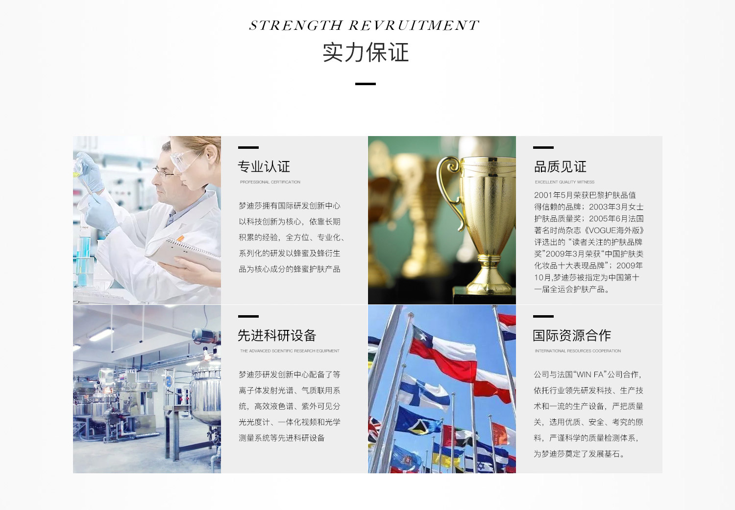 2005年,榮獲法國(guó)著名時(shí)尚雜志《VOGUE海外版》評(píng)選出的“讀者最關(guān)注的護(hù)膚品牌”獎(jiǎng)